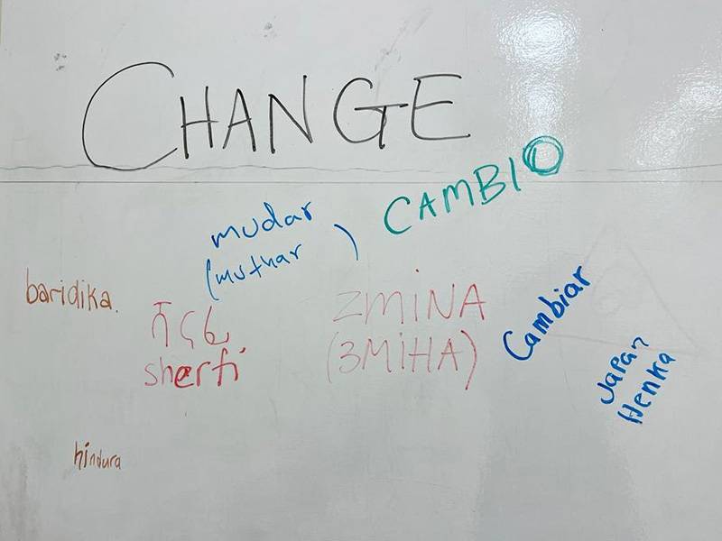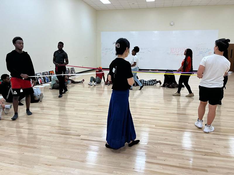 The workshop focused on three prompts that centered around a change—in physical location, state of mind, or life circumstance—in the life of the participant artist. The prompts were designed to be intentionally open, allowing each participant to determine what facet of their story they wanted to focus on. Each participant began with the prompt, “In the beginning of this story…” encouraging them to think, “What was life like before? Where did this story begin?” The beginning could be before moving to the U.S., before moving to Harrisonburg, before becoming a teenager, or before discovering basketball, for example. The next prompt was, “And then there was a change.” This prompt focused on a crossing or movement, a changing of location, mindset, or circumstance. Each participant decided for themselves what change they wanted to focus on, in the context of their own story. The third prompt was, “A dream is now unfolding.” Here each participant had the chance to outline how that change had manifested in their lives, and what dreams were emerging as a result.