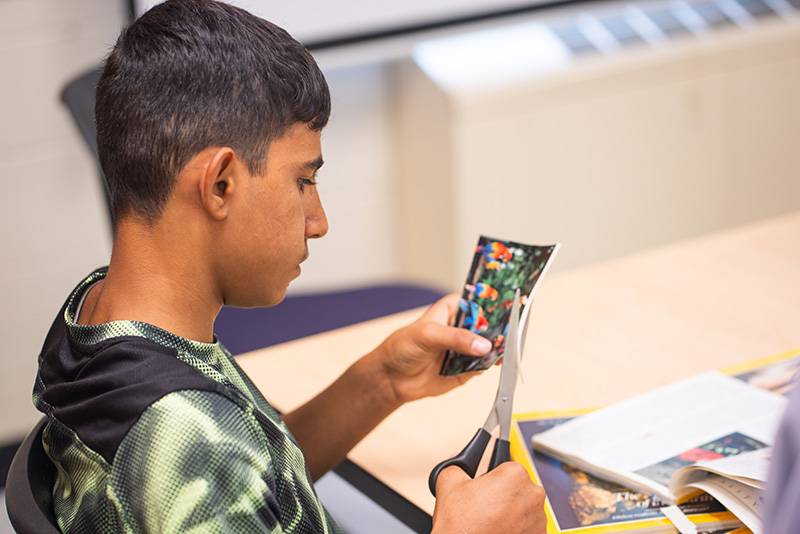 Dreams Unfolding was a 6‑week summer arts workshop for high school students from refugee backgrounds that empowered participants to give voice to their own story and share their cultural identity. Participants shaped their story through open-ended writing prompts, strengthened their visual storytelling skills through photographic collage, and expressed their fluid cultural identities through movement and dance. The images and writing became an exhibit that showcased a change in the life of the artist.